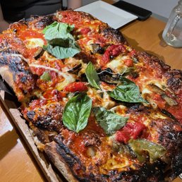 was staying in the area with friends and they said what a great pizza this was and they weren't lying. This is really good pizza very large more than four people can eat. We had half white pizza and half meatball pizza. We each had a salad we had the Milano salad and they had the eggplant with mozzarella. Everything was delicious. The service was good indoor outdoor eating.